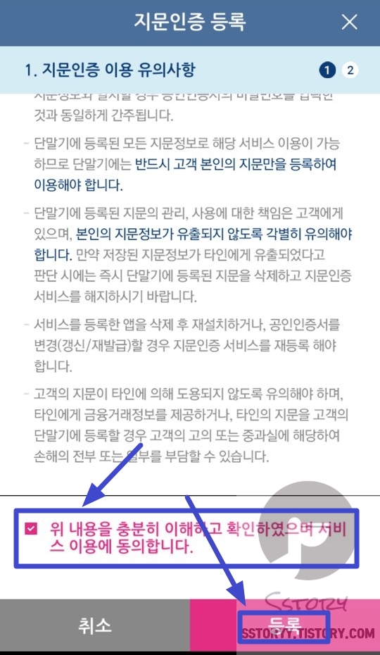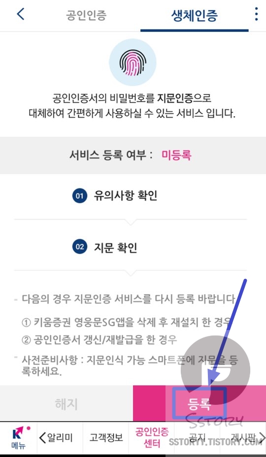 1) 공인인증서로 로그인을 하면 생체인증을 등록여부를 물어봅니다. 생체인증을 등록하시면 지문 또는 홍채를 통해 로그인을 할 수 있어 간편합니다. 저는 생체인증 등록하고 사용하시는 것을 추천합니다.