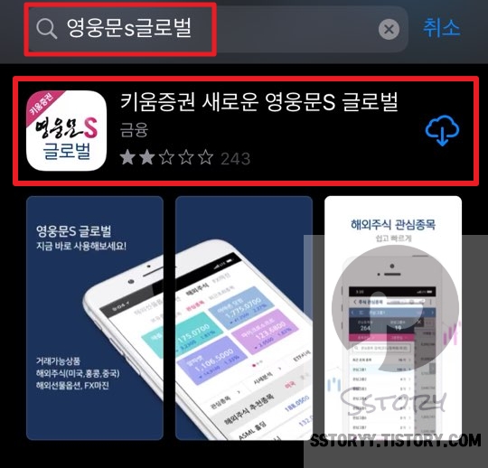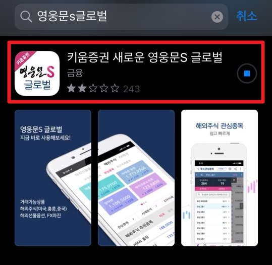 1) 앱스토어 또는 구글플레이스토어에서 영웅문S글로벌을 검색 후 다운로드 받습니다. ▼