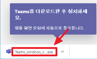 2) [Teams 다운로드] 버튼을 클릭하여 다운로드를 진행합니다. ▼