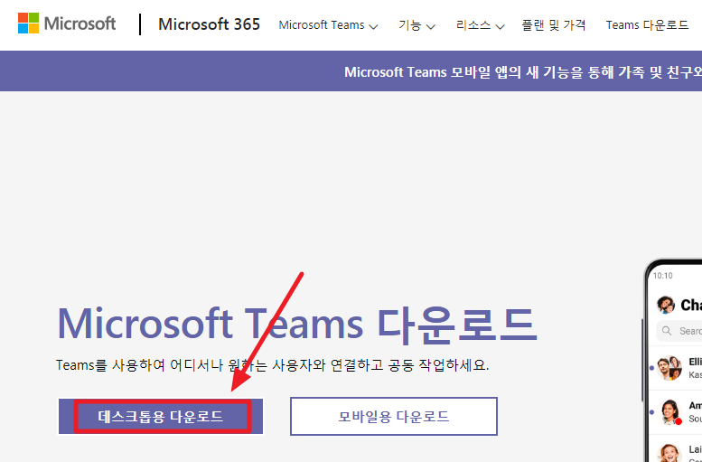 아래 링크를 클릭하면 마이크로소프트 팀즈 다운로드 페이지로 이동합니다.