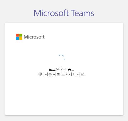 10) 로그인 및 Teams 설정이 진행됩니다. 작업 진행 중에 브라우저를 열어두어야 합니다.