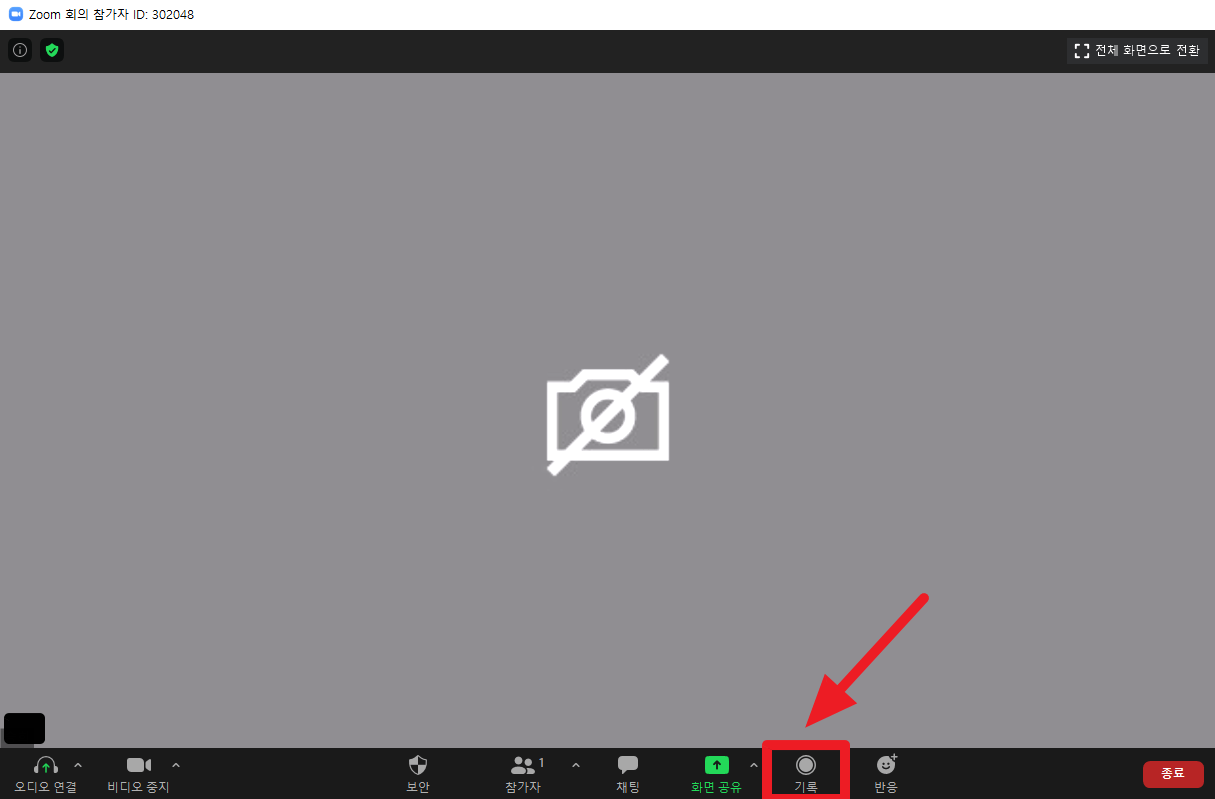 회의 창 하단 메뉴바를 보시면 기록 버튼이 있습니다. 기록 버튼을 클릭하면 진행 중인 회의를 기록할 수 있습니다.