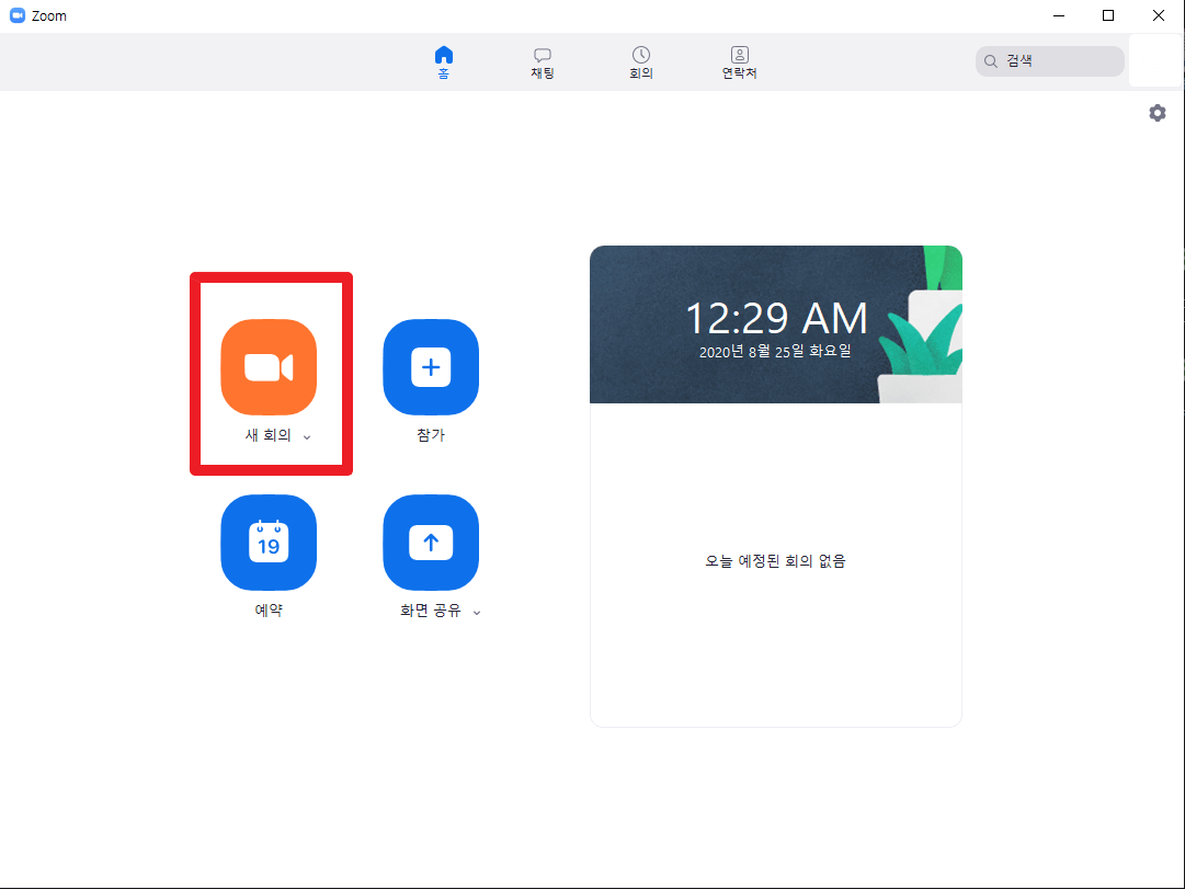 1) 새 회의 버튼을 눌러 회의를 열어 설정을 확인합니다. ▼