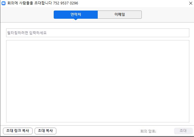 2) 다른 방법으로는 하단 메뉴바에 참가자 버튼을 클릭하여 초대 기능을 이용하는 것이 있습니다. 초대 버튼을 클릭하고 연락처 또는 이메일을 입력하여 초대할 수 있습니다. ▼