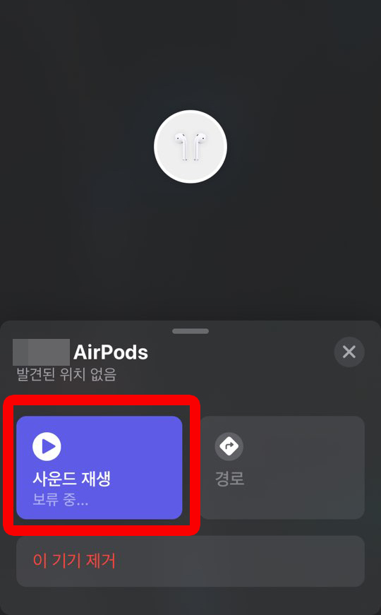 사운드 재생이라는 버튼을 누르면 에어팟 유닛에서