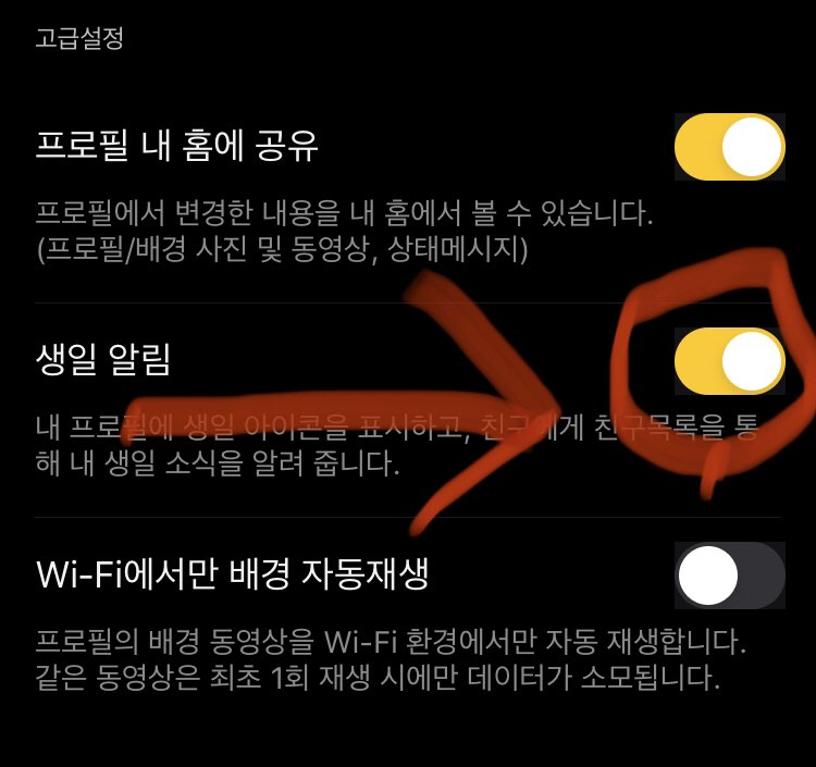 3. 상대방 생일 내 친구목록에 안 뜨게 하는 방법