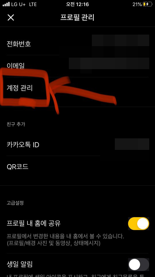 2. 카카오톡에서 내 생일 '정보' 자체를 지우는 방법
