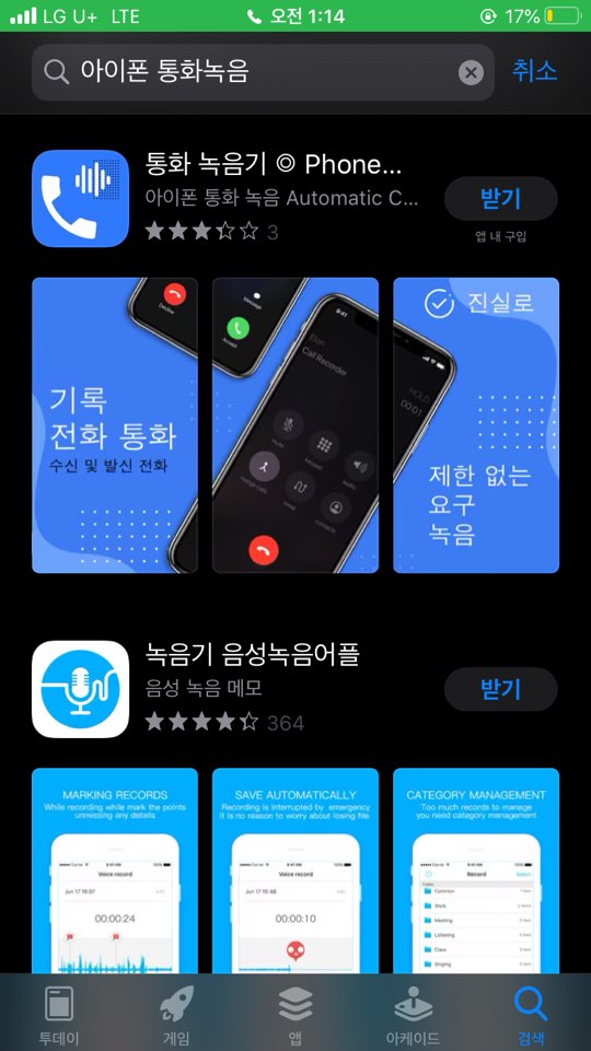 아이폰에서는 어플로는 절대 통화 녹음이 되지 않습니다. 단언컨대 그 어떤 어플로도 통화 녹음을 할 수 없습니다. 심지어 이 어플들은 유료라는 문구가 따로 없습니다.