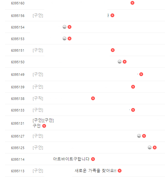 보통 이러한 게시판들은 활동이 없는 죽은 게시판이 많은데요. 거사모의 구인구직 게시판은 게시글 옆의 N 아이콘을 보면 알 수 있듯이 지금까지도 활발하게 글이 올라오고 있습니다.