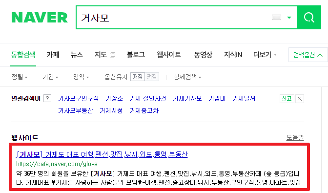 거사모는 '거제도를 사랑하는 모임' 의 줄임말으로 2003년부터 운영 되어 온 네이버카페입니다. 이름에서부터 알 수 있듯이 거제도를 대표하는 커뮤니티로 회원 수 36만명의 대형카페입니다.