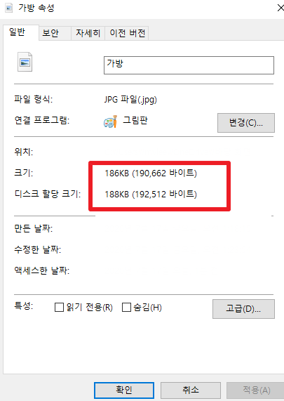 7) 성공적으로 186KB까지 용량이 줄여졌습니다. ▼
