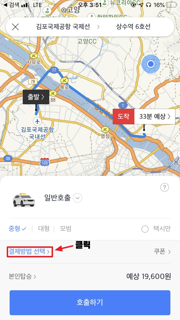 3) 저는 김포공항에서 상수역까지 가는 경로로 예를 들어보겠습니다.