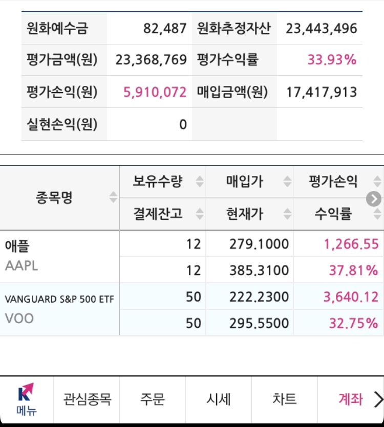 4월 경에 매수했으며 현재 수익입니다.